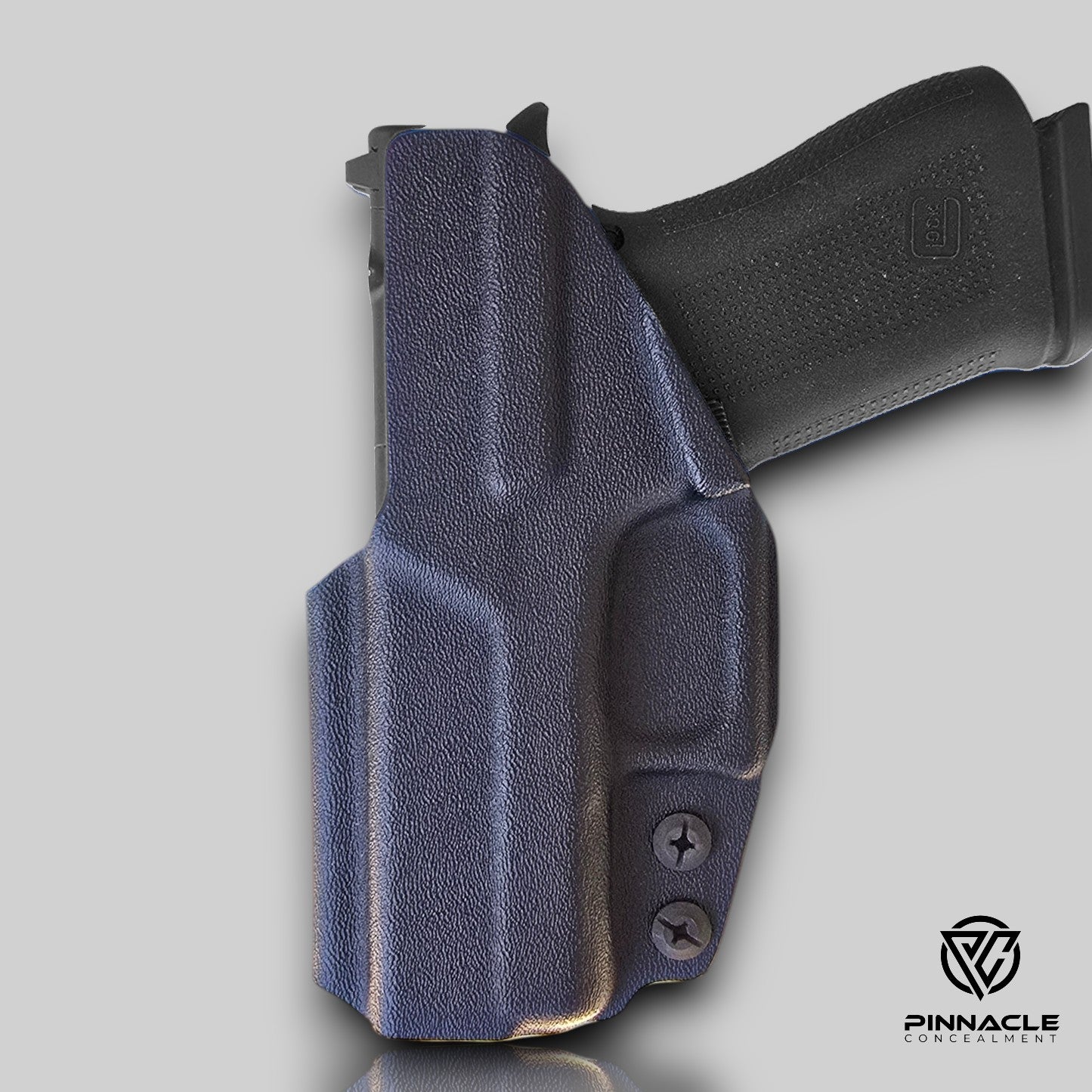 The Glock 48 holster is compatible with the Glock 43 fiream and may be used as an alternative option. Its added length provides a wider range of height adjustments when paired with HLR clips. Please note that the holster will extend beyond the muzzle of the firearm.